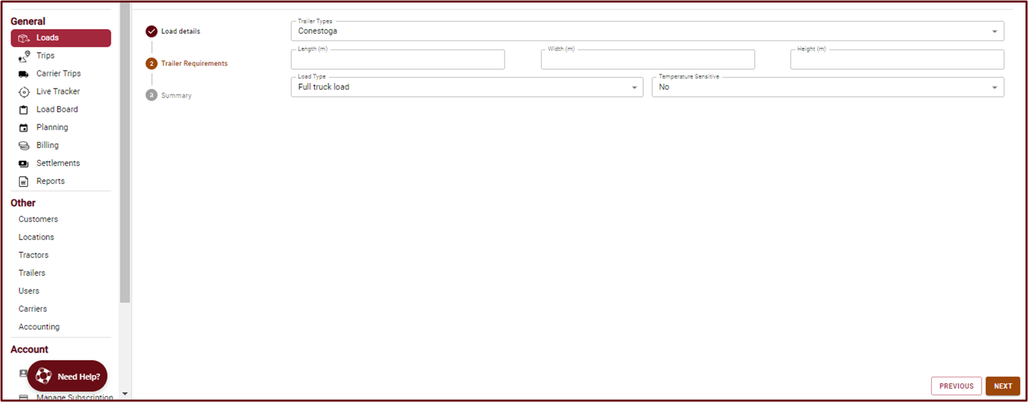 - Next, complete the Trailer Requirements page and select ‘Next’ again